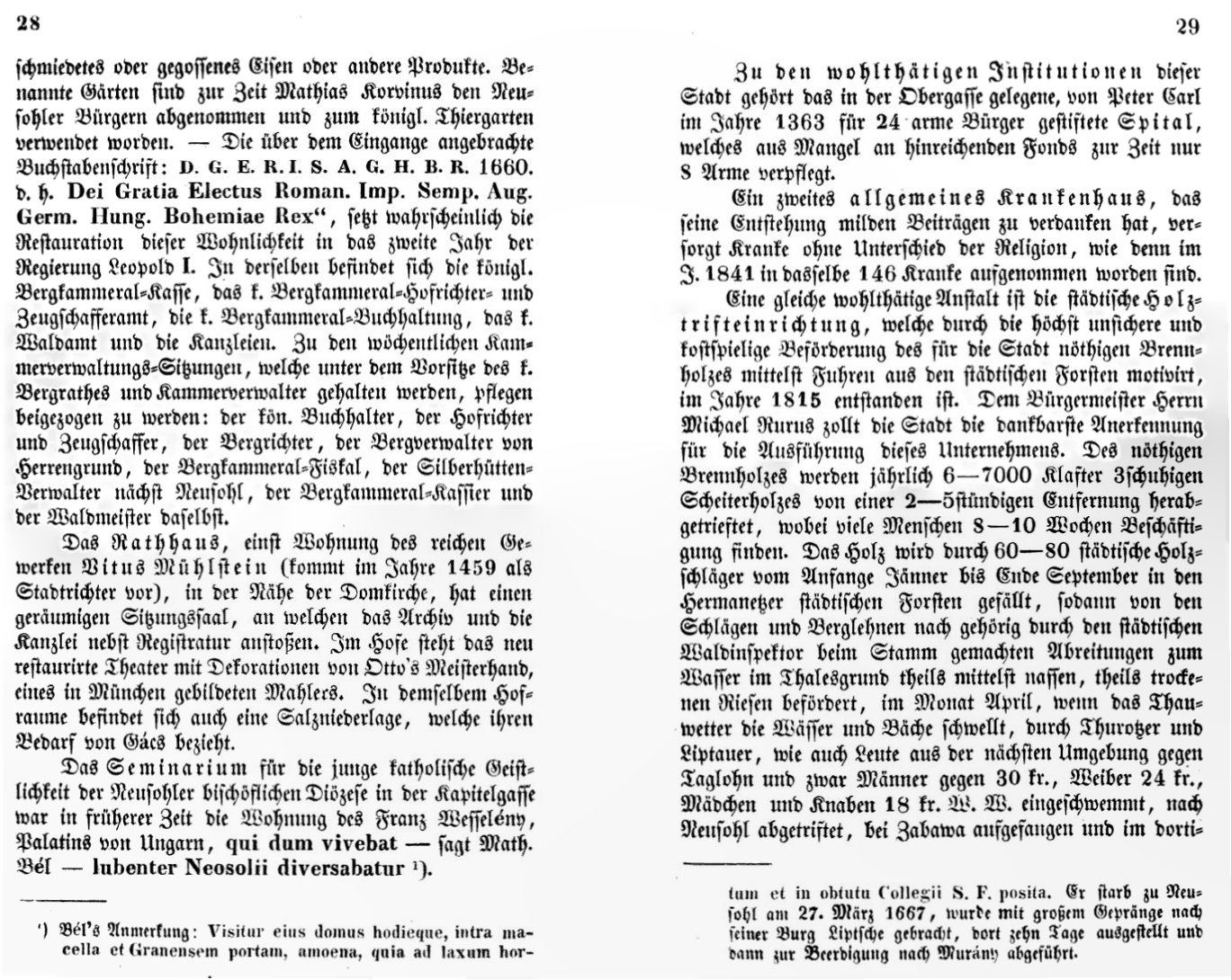 Kniha Christiana Andreasa Zipsera - Neusohl und dessen Umgebungen z roku 1842. Kniha je zoradená podľa jednotlivých stránok. Na každej strane je sken z originálnej knihy, prepis do nemčiny, preklad do slovenčiny a doplňujúce poznámky k textu. Kniha je napísaná pútavým jazykom, je vidno že ju písal veľmi vzdelaný človek. Zachytáva obdobie, kedy už baníctvo na Slovensku začínalo upadať.