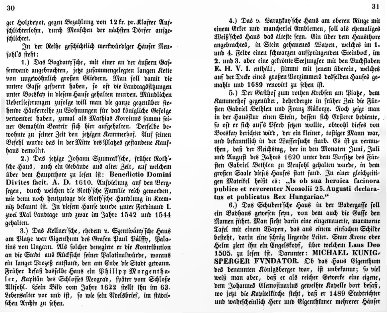Zipser popisuje veľkú skupiny zaujímavých historických (už v jeho dobe) domov.