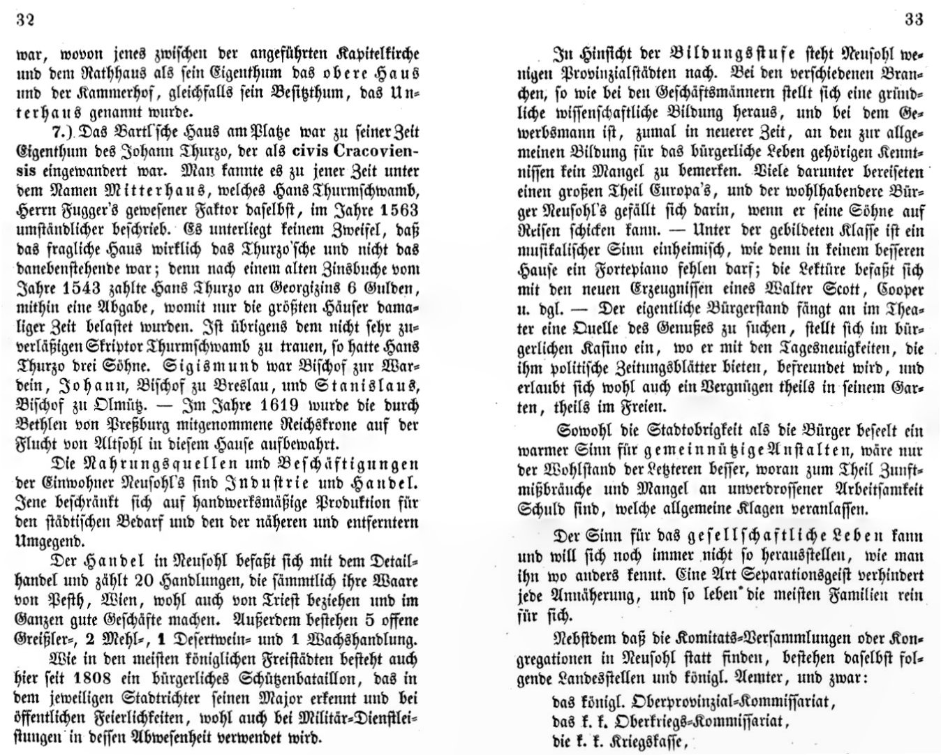 Zipser nám dopĺňa niekoľko informácií o majetku Jána Thurza, jeho rodine a vymenúva, že vtedy bolo v meste 20 obchodov. Spomína aj kultúrny život a čítanie kníh, napríklad od Waltera Scotta.
