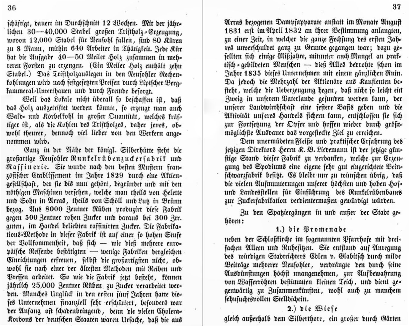 Zipser dokončuje splavovanie dreva a popisuje mestský cukrovar, ktorý je podľa neho technicky vyspelý. Začína popisovať aj miesta oddychu.