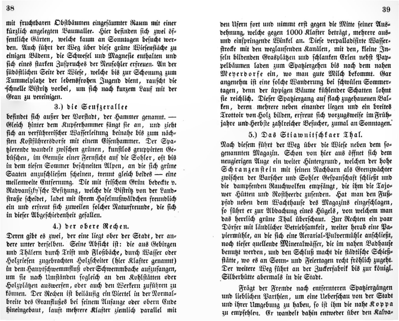 Zipser popisuje rôzne miesta na prechádzky v okolí mesta. Vtedy to bolo okolie mesta, dnes je to samozrejme častokrát už v rámci mesta. Používa až príliš kvetnatú reč, pravdepodobne na tie prechádzky aj sám chodil.
