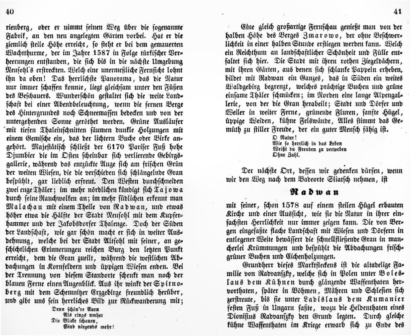 Zipser zase kvetnato popisuje výstupy k Vartovke, k niektorým ťažšie identifikovateľným vyhliadkam nad mestom a začína popisovať Radvaň, ktorá bola vtedy samostatnou obcou.
