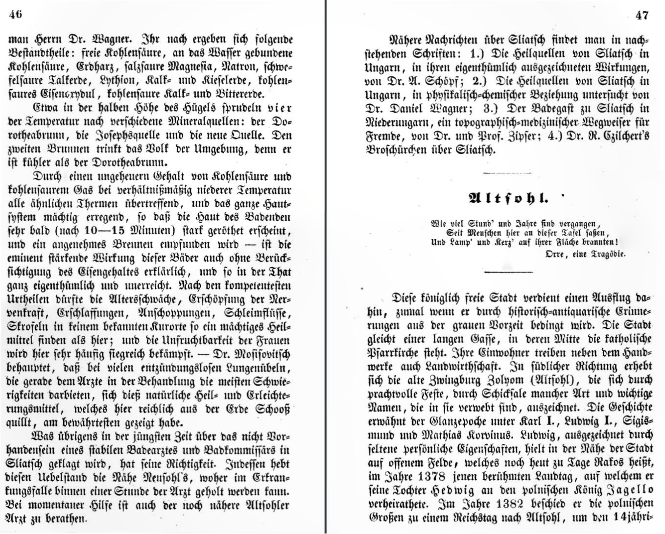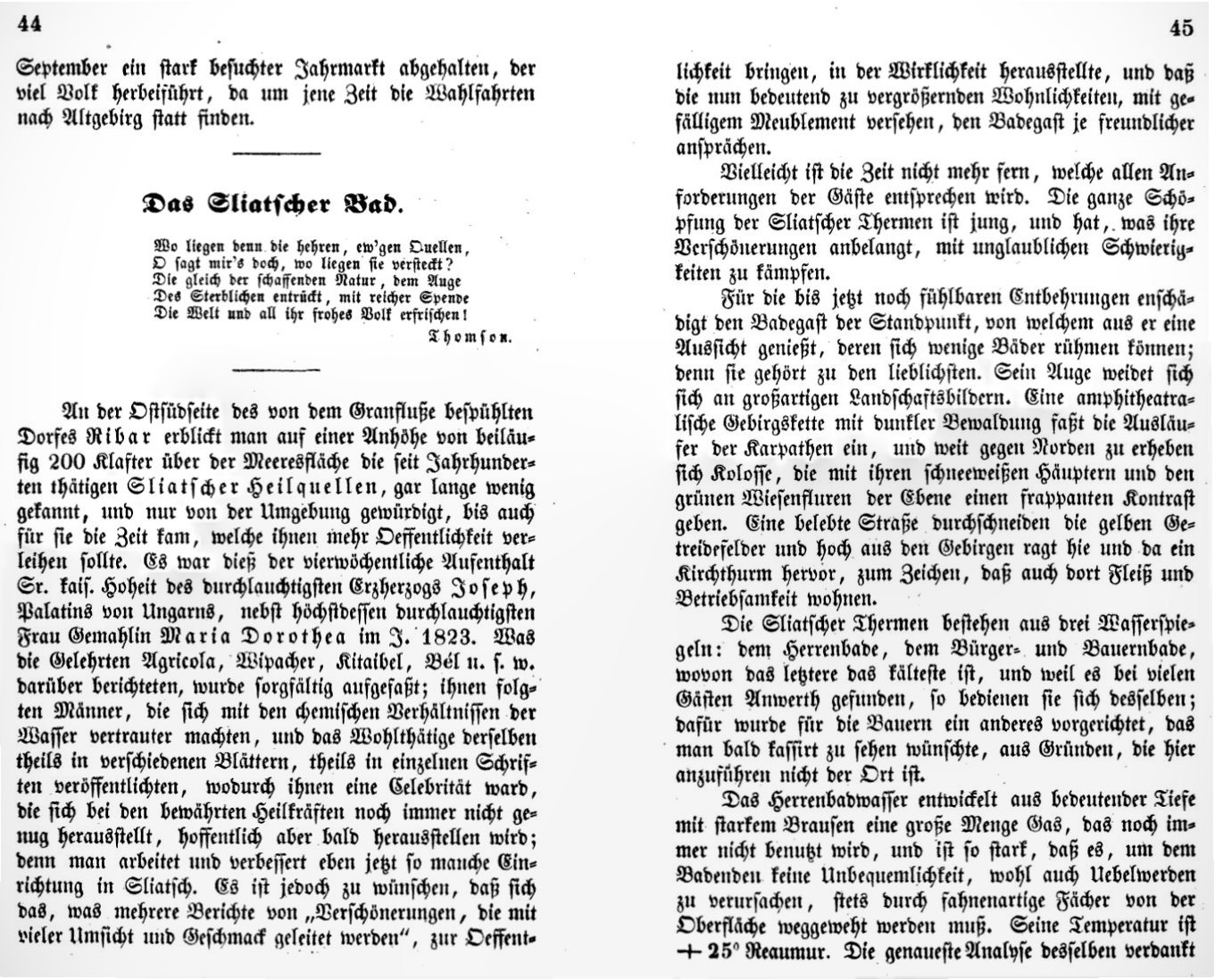 Zipser dokončuje popis Sliača. Odkazuje sa aj na vlastnú knihu, ktorú o tomto kúpeľnom mestečku napísal. Začína popisovať Zvolen.