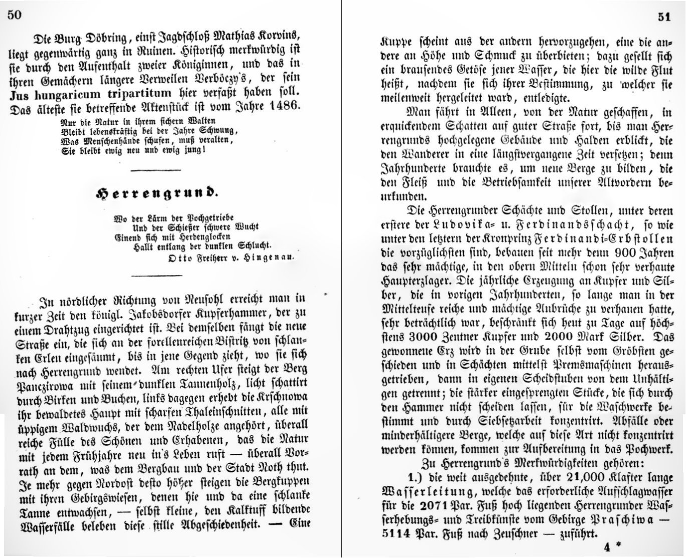 Zipser popisuje zaujímavosti na Španej Doline. Texty sa zaoberajú baníckymi technickými pamiatkami a unikátnym prírodným javom v Španej Doline (Herrengrund), ako aj procesom získavania medi z banských vôd (cementáciou).