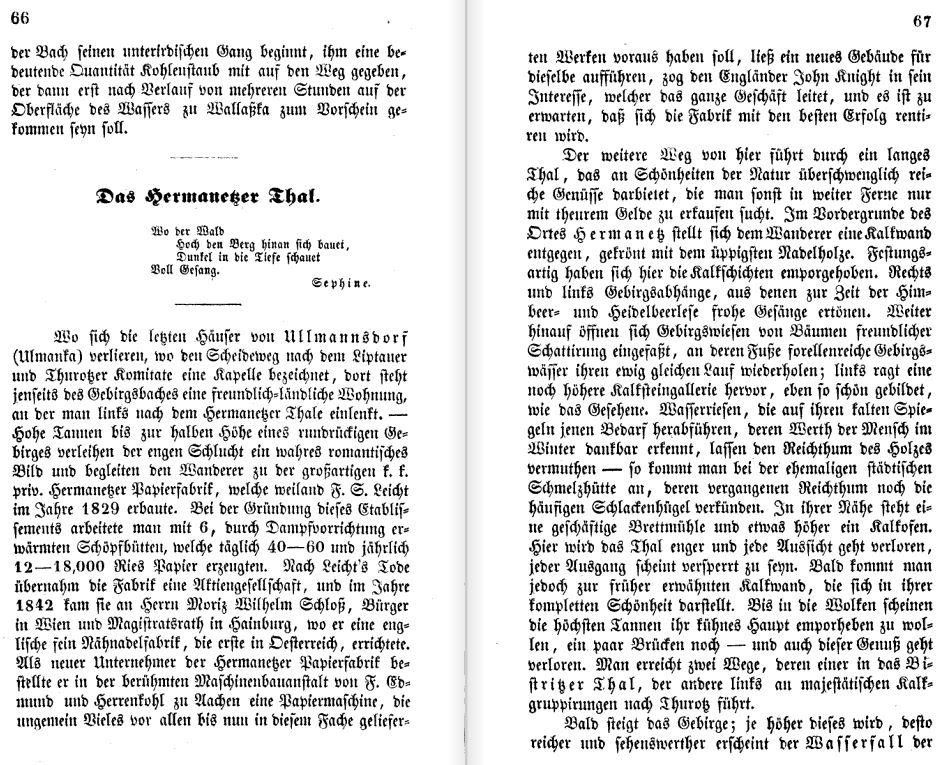 Zipser sa venuje prírodným krásam okolia Harmanca a začiatku opisu slávnej „Kostenej jaskyne“.