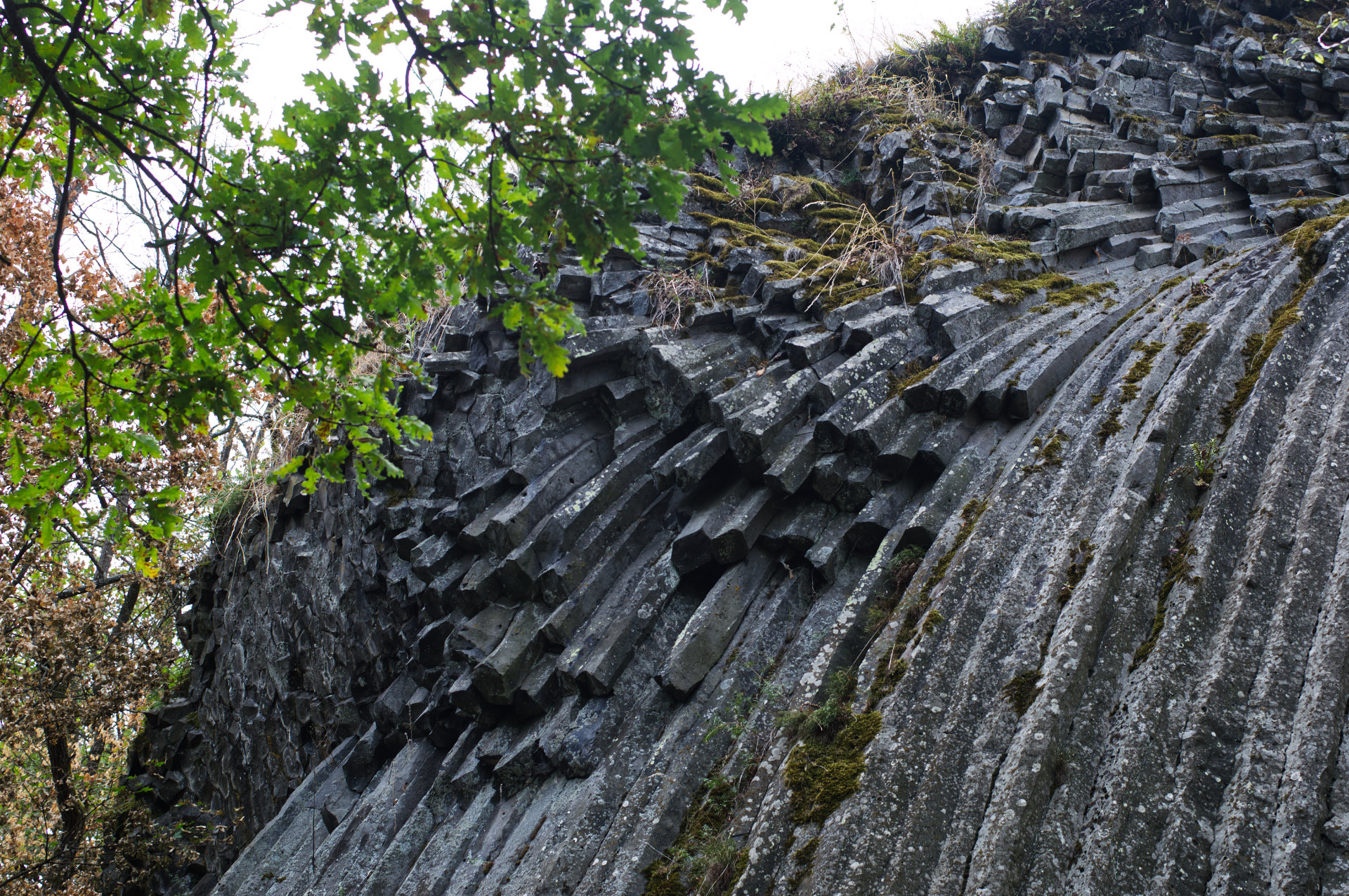 Pekná ukážka šesťbokých stĺpov čadiča. V tomto prípade sú dokonca ohnuté do podoby vodopádu, čo by mala byť geologická rarita.